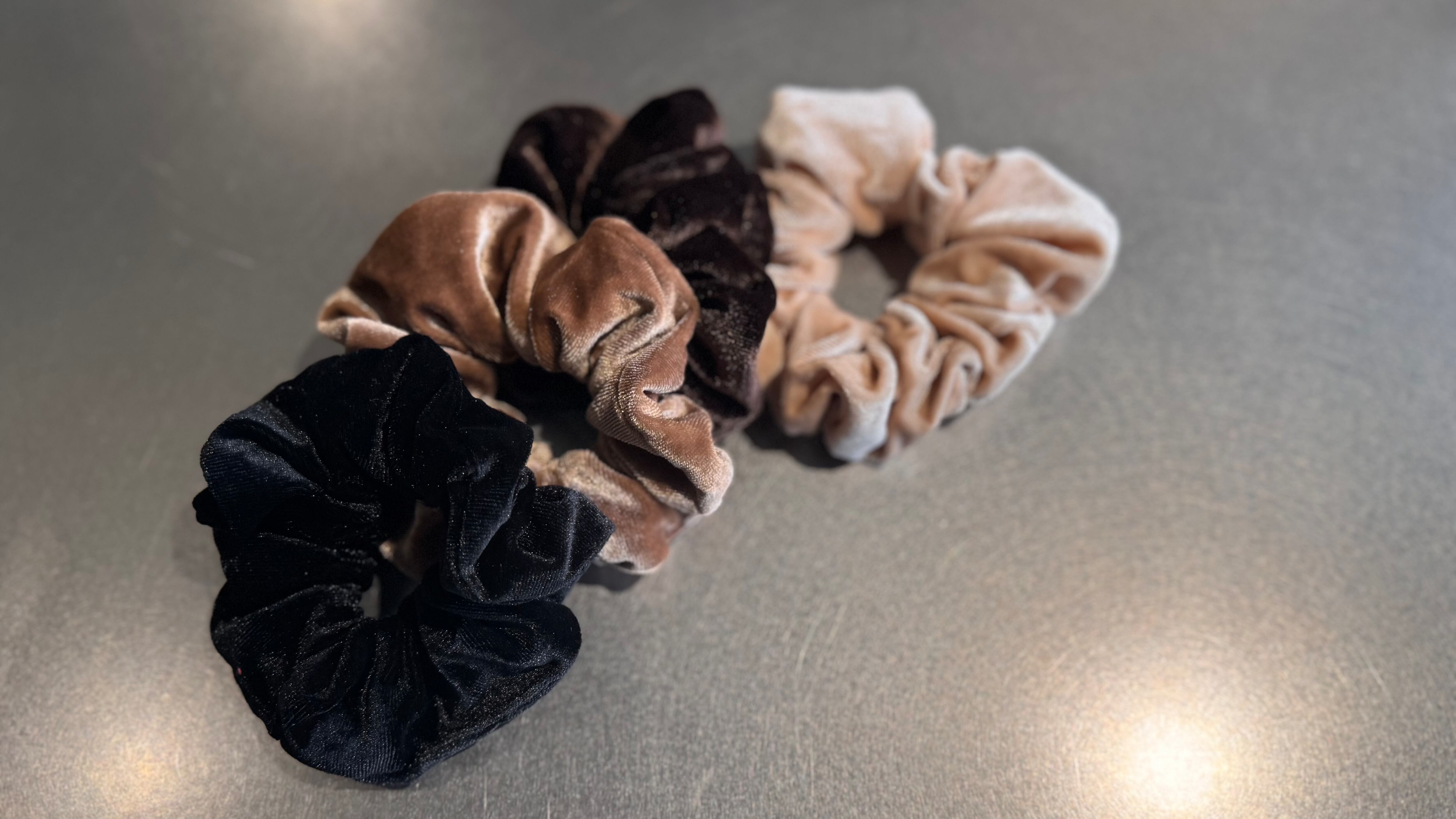 手首につけるだけでも可愛い ベロア生地のシュシュ